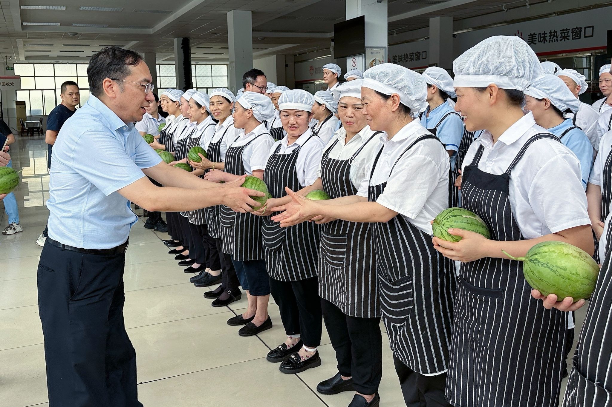 史代敏先后來到柳林校區(qū)畢業(yè)生寢室維修改造、五谷堂維修改造,光華校區(qū)一食堂改造項目、綠楊學(xué)生公寓1-6舍施工和危房整治等施工現(xiàn)場,詳細查看工程項目建設(shè)進展情況,細致檢查安全生產(chǎn)及管理關(guān)鍵環(huán)節(jié),對施工安全和工程質(zhì)量提出明確要求,對發(fā)現(xiàn)的問題進行現(xiàn)場指導(dǎo)立即整改。史代敏檢查了兩校區(qū)食堂供餐、公寓服務(wù)、急診值守、維修值守等保障情況,對在暑期高溫天氣堅守工作崗位的后勤工作人員表示誠摯慰問,并送上清涼解暑的慰問品。