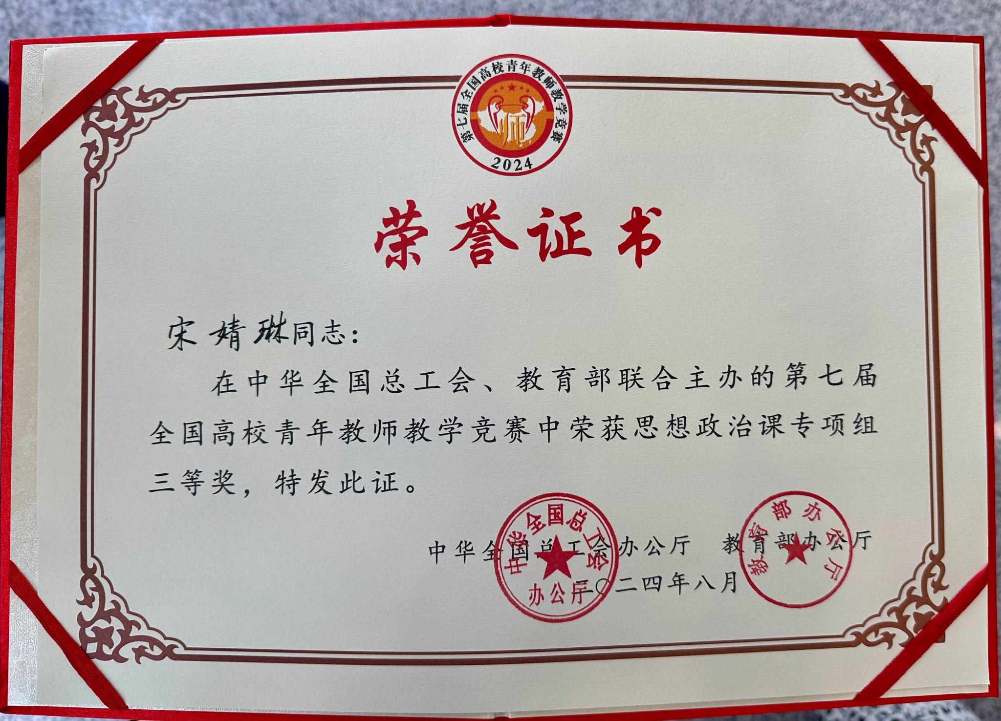 談到這次參賽和獲獎經(jīng)歷,宋婧琳老師收獲良多:“經(jīng)過這次比賽,我深受啟發(fā)、倍感振奮。學校黨委高度重視,備賽過程中各位領(lǐng)導(dǎo)、專家和老師給予我莫大幫助。臺上一分鐘臺下十年功,16個問題的剖析過程,是一個反復(fù)論證、反復(fù)打磨的過程。青教賽為我們青年教師提供了歷練和成長的舞臺,未來我將繼續(xù)保持對教學的熱愛,深入踐行教育家精神,以更堅定的信心站穩(wěn)青春講臺,勇攀教學、科研新高峰!”