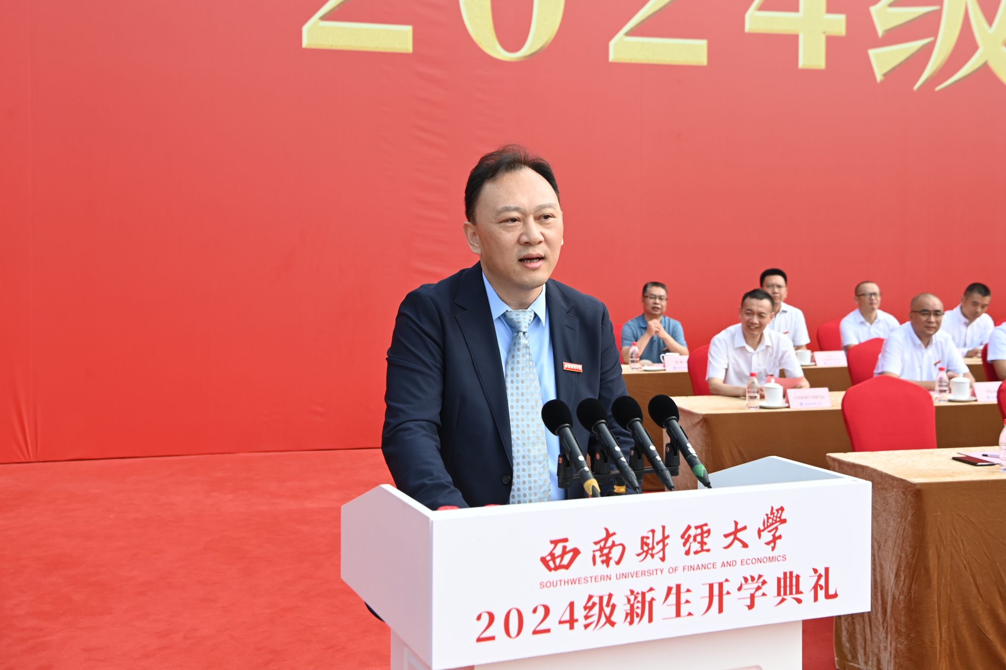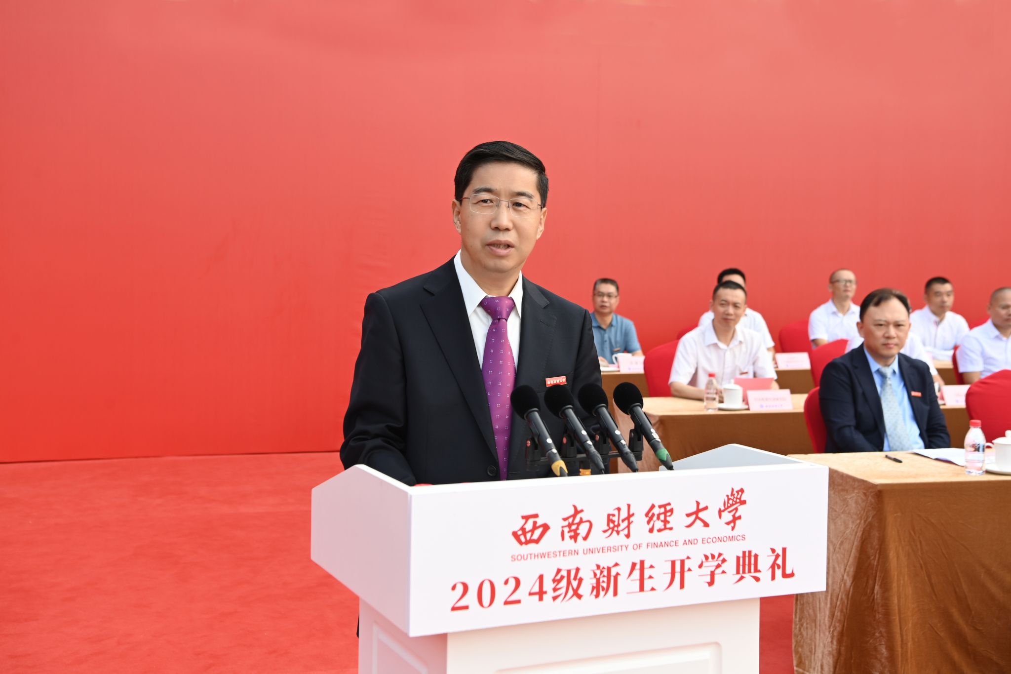 趙建軍溫情寄語2024級新生。探索吧,西財青年!在浩瀚書海中探索解答“為何讀書、讀什么書、怎樣讀書”的求知三問,以讀書筑牢挺膺擔當的基石,以敏銳腦力向未知前進,用書香滋養經世濟民的情懷,讓青春浸潤于書香之中,綻放在山河之間。奔跑吧,西財青年!在運動鍛煉中練就健康體魄、塑造陽光心態,錘煉干事、擔事、成事的“鐵肩膀”,涵育豁達、曠達、通達的“大胸懷”,以健康昂揚的風貌向遠方前進,投身時代發展滾滾洪流、強國有我偉大實踐之中。攀登吧,西財青年!在課堂內外磨礪順境中有耐力、逆境中有彈力的堅韌心力,向高處前進,讓所知所學扎根在祖國最需要的地方,將百年西財“孜孜以求”的精神力量篆刻在為人為學為事的始終,篆刻進主動服務中國式現代化的青春篇章。趙建軍期待2024級全體新同學,以卓越的見識、健康的身心、堅毅的品格,把前進寫在向深探索、向前奔跑、向上攀登的西財歲月中,成為追光的人、成為奔騰不息的西財力量,在強國建設、民族復興偉業中展現青春作為、彰顯青春風采、貢獻青春力量!