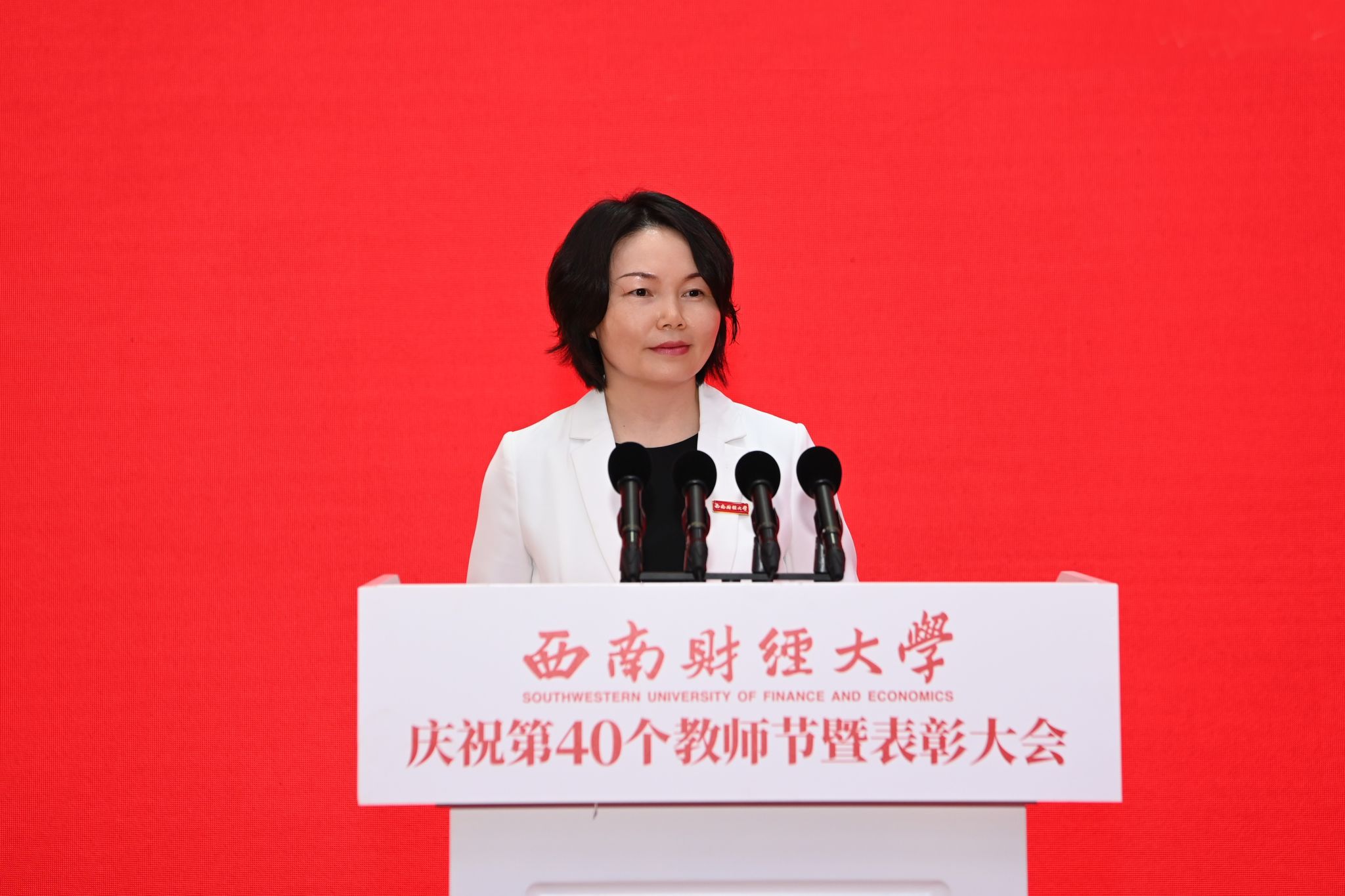 趙建軍指出,長(zhǎng)期以來(lái),學(xué)校黨委把隆重慶祝教師節(jié)作為弘揚(yáng)尊師重教傳統(tǒng)、加強(qiáng)教師隊(duì)伍建設(shè)、增強(qiáng)教師職業(yè)榮譽(yù)感的重要載體,成為學(xué)校思政工作體系和名師大家文化的重要組成部分。廣大西財(cái)教師牢記為黨育人、為國(guó)育才使命,以赤誠(chéng)之心、奉獻(xiàn)之心、仁愛(ài)之心投身教育事業(yè),用實(shí)際行動(dòng)培養(yǎng)了一批批優(yōu)秀人才,詮釋出教育家精神的時(shí)代底色,彰顯出“大國(guó)良師”的西財(cái)風(fēng)采。過(guò)去一年,全體教師學(xué)思踐悟“鑄忠誠(chéng)”、躬耕教壇“育英才”、頂天立地“治學(xué)問(wèn)”、經(jīng)世濟(jì)民“立新功”,在思想引領(lǐng)、教育教學(xué)、科學(xué)研究、社會(huì)服務(wù)等領(lǐng)域取得豐碩成果。