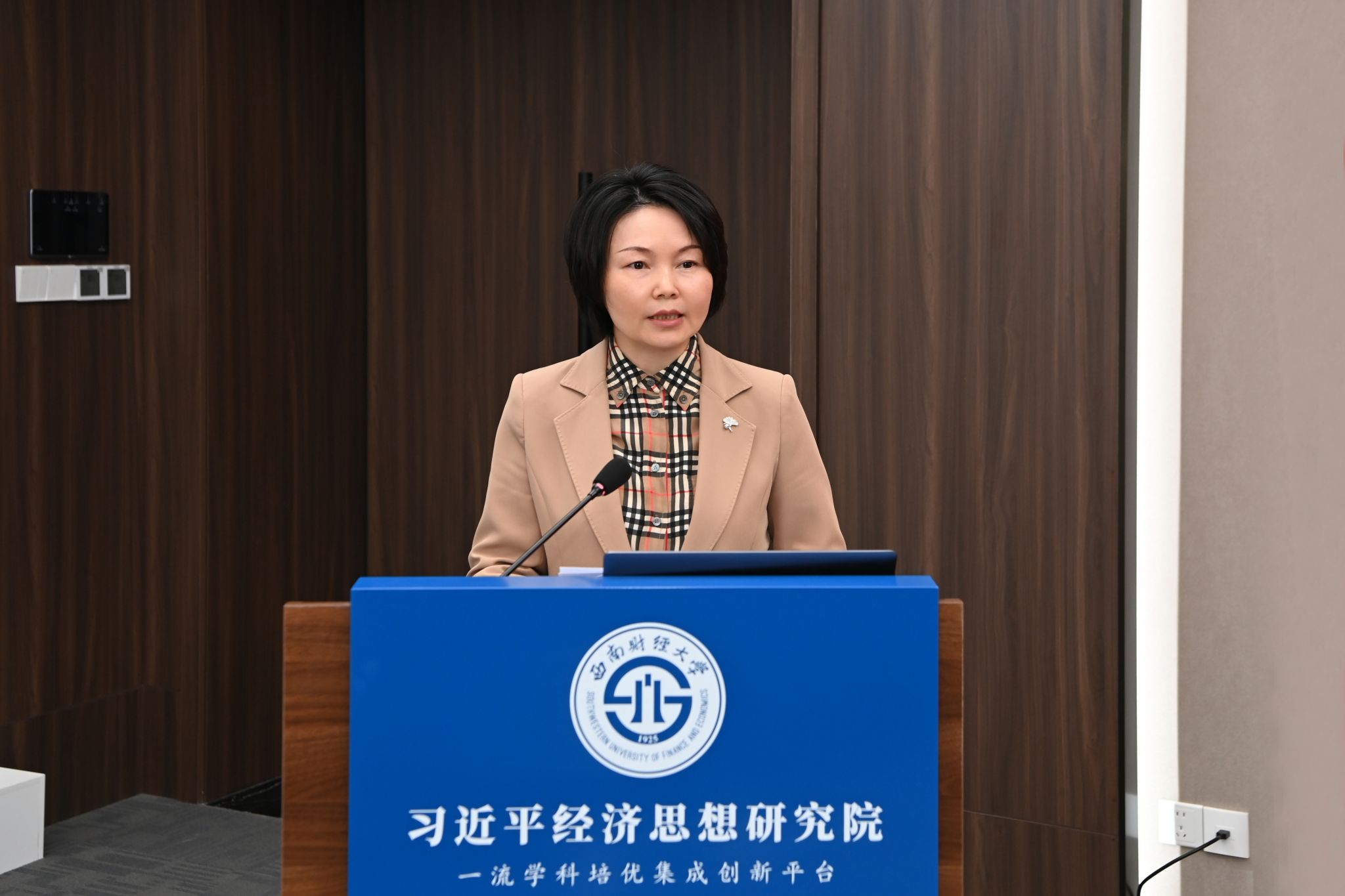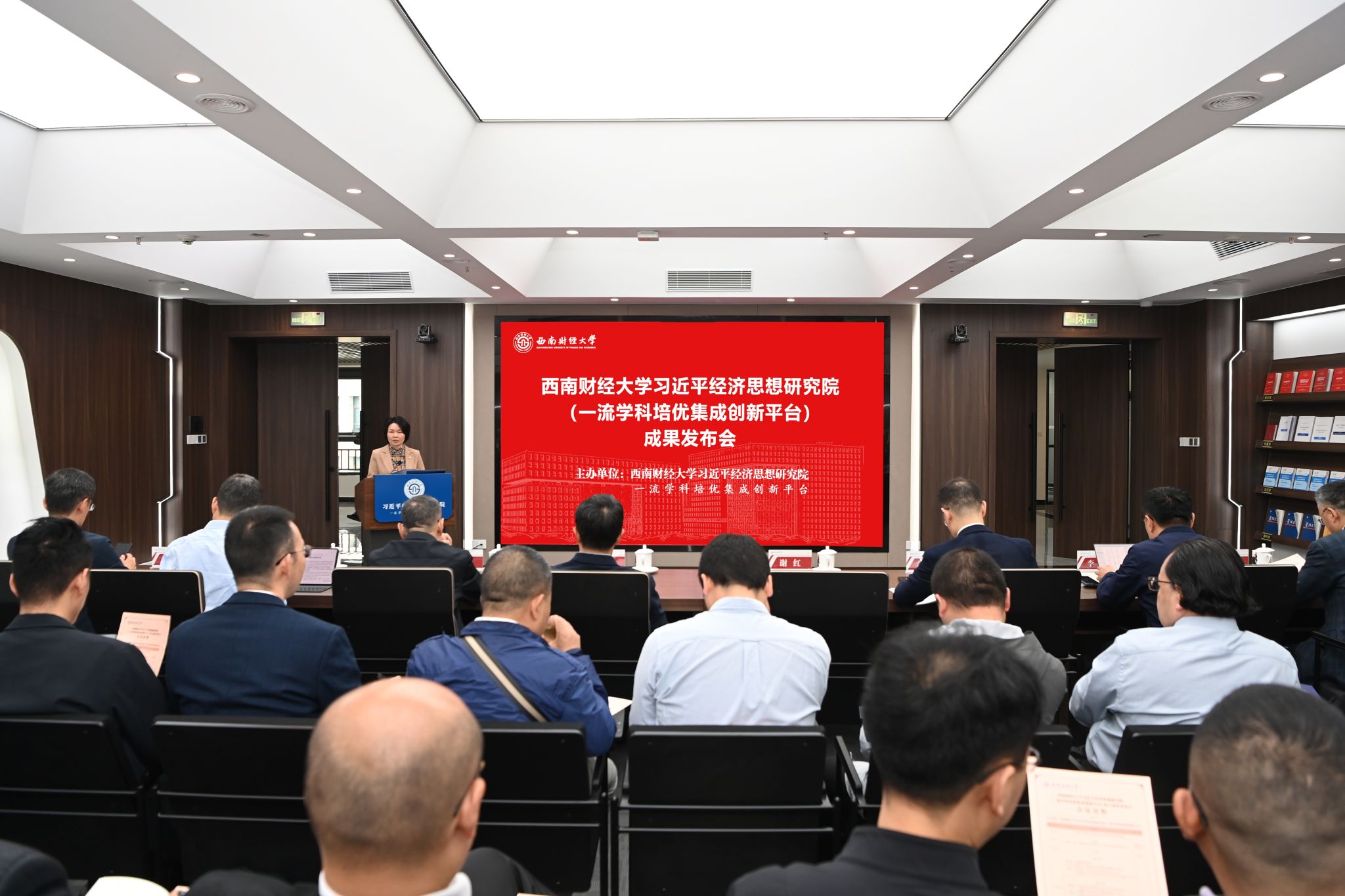 10月9日,學校習近平經濟思想研究院(一流學科培優集成創新平臺)成果發布會在柳林校區成功舉行。學校黨委副書記、習近平經濟思想研究院黨委書記謝紅,黨委常委、副校長、習近平經濟思想研究院常務副院長王擎出席發布會。來自中國社會科學院、中國農業科學院、南開大學、中南財經政法大學、四川大學、華南農業大學的專家學者,中國教育報、中國網、四川日報、教育導報等媒體,以及習近平經濟思想研究院各研究團隊成員代表參加發布會。