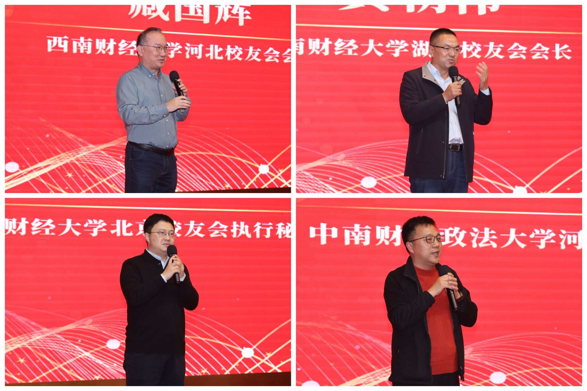學(xué)校河北校友會會長臧國輝、湖北校友會會長黃朝偉、北京校友會執(zhí)行秘書長李東夏,中南財經(jīng)政法大學(xué)河南校友會秘書長吳東明分別發(fā)表了熱情洋溢的講話,表達(dá)了對西財河南校友會未來發(fā)展的堅定信心和美好期待。