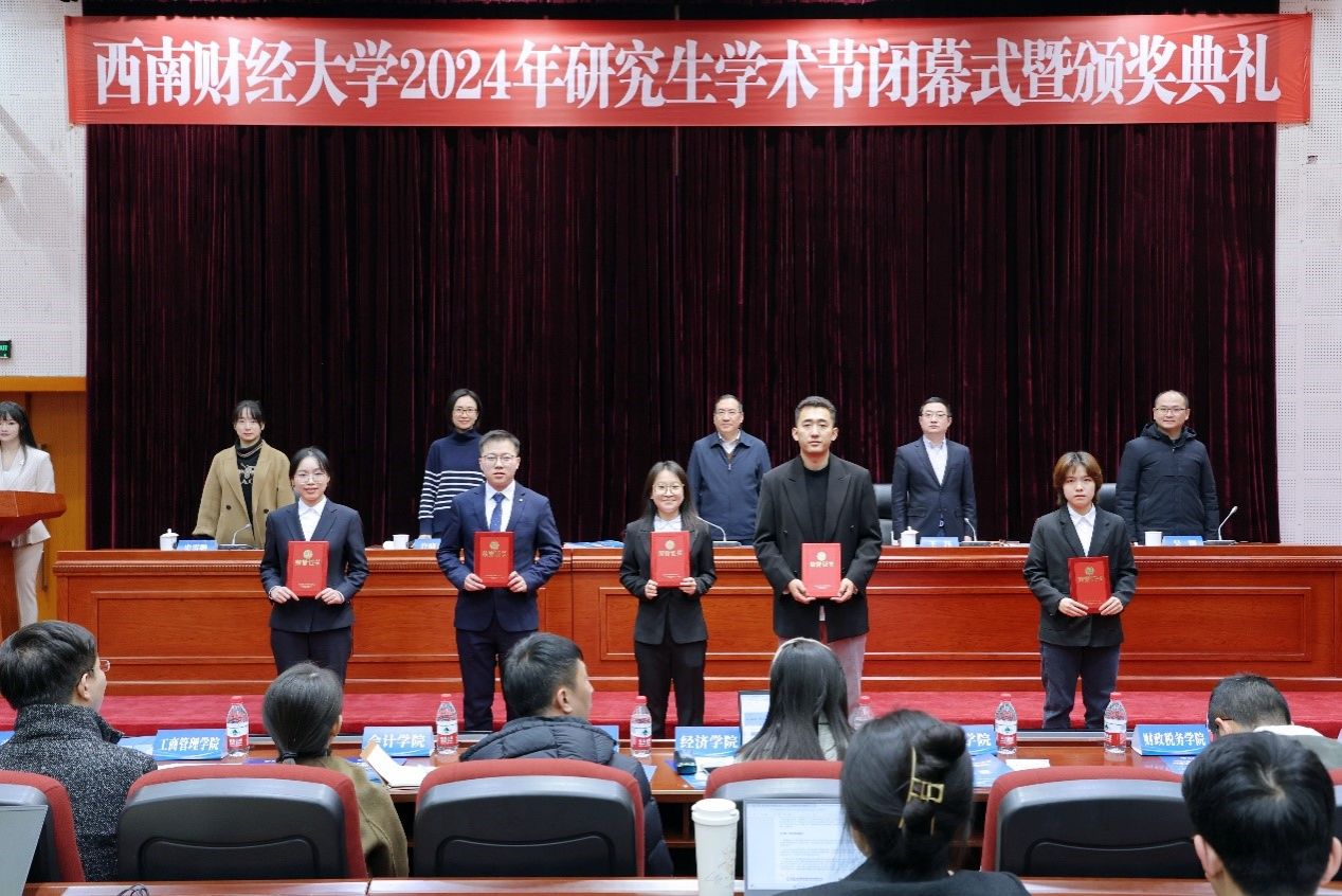 研究生院院長王玨宣讀《關于表彰西南財經大學2024年研究生學術節優秀案例、優秀論文、優秀組織單位的決定》。史代敏與相關職能部門負責人向獲獎代表頒發證書,向獲獎案例、獲獎論文作者以及優秀組織單位表示祝賀。