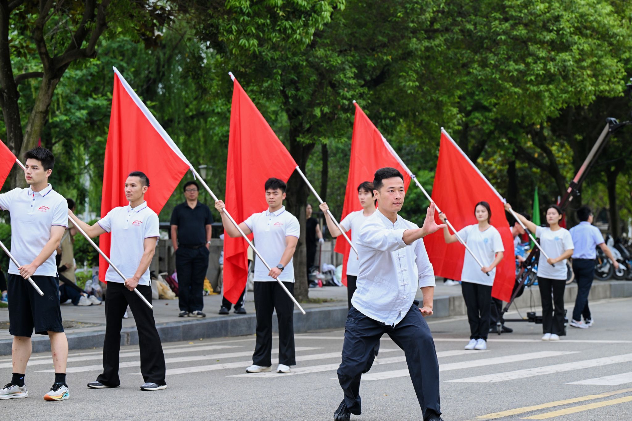 柳林校區騰驤樓前,教師剛勁有力的武術表演和學子奮力揮舞的旗幟交相輝映,在“強國建設、西財擔當”“祝百年西財生日快樂”的聲聲禮贊中匯聚昂揚起“巍巍學府,世紀榮光”的磅礴情懷。