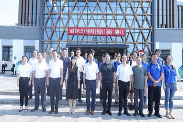為深入學(xué)習(xí)貫徹習(xí)近平新時(shí)代中國(guó)特色社會(huì)主義思想和黨的二十大精神,扎實(shí)推進(jìn)主題教育,更好服務(wù)鄉(xiāng)村振興國(guó)家戰(zhàn)略,8月15日,西南財(cái)經(jīng)大學(xué)“鄉(xiāng)村振興博士服務(wù)站”在沿灘區(qū)鄉(xiāng)村振興綜合服務(wù)中心揭牌,標(biāo)志著學(xué)校鄉(xiāng)村振興博士服務(wù)站服務(wù)丘陵地區(qū)鄉(xiāng)村振興工作正式啟程。自貢市沿灘區(qū)區(qū)領(lǐng)導(dǎo)覃建波、李雅琴、楊文及相關(guān)部門(mén)負(fù)責(zé)人,西南財(cái)經(jīng)大學(xué)國(guó)內(nèi)合作與發(fā)展處處長(zhǎng)趙海程、中國(guó)西部經(jīng)濟(jì)研究院黨委書(shū)記楊奇才及部分師生參加揭牌儀式。