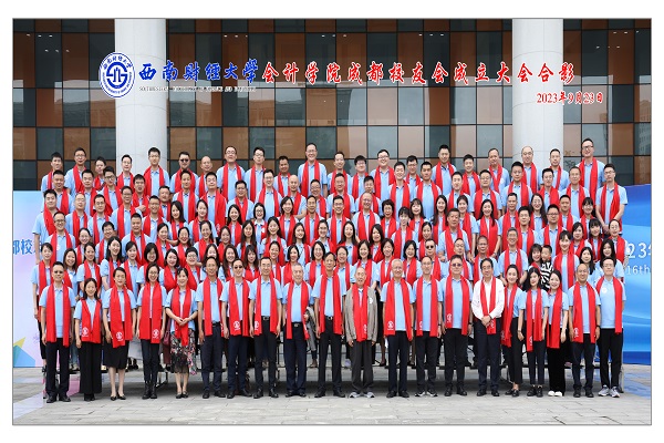 會計學院黨委書記劉曉彬宣讀了首屆理事會名單?;顒蝇F場,學院領導與特邀退休教師代表為學院成都校友會授牌、授旗,向理事會成員頒發聘書。