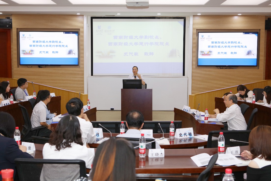 7月6日,建行大學2021年產教融合政策解讀及工作推進培訓班開班典禮在光華校區育才園703室舉行。我校副校長、西財建行學院院長史代敏,建行大學執行副校長于保月出席開班儀式并致辭。中國教育發展戰略學會產教融合專業委員會理事長、清華大學繼續教育學院黨委書記刁慶軍、教育部學校規范建設發展中心項目主管蘭天一、建行大學相關部門負責人等及建行大學各學院、分行分校負責推進聯盟重點項目、產教融合相關業務骨干人員參加了開班儀式。