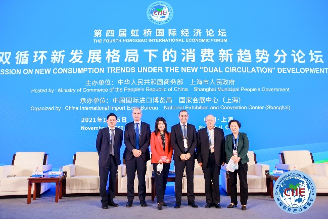 11月5日,第四屆虹橋國際經濟論壇雙循環新發展格局下的消費新趨勢分論壇在上海國家會議中心舉行。商務部副部長兼國際貿易談判副代表王受文,上海市副市長宗明,意大利駐華大使方瀾意等領導出席講話,國務院發展研究中心市場經濟研究所所長王微、國際知名企業負責人等參會。我校成渝經濟區發展研究院院長、(中國)消費經濟學會會長楊繼瑞作為特邀嘉賓參加論壇訪談,工商管理學院消費經濟研究所所長、消費經濟學會常務副秘書長張恩碧受邀參會。