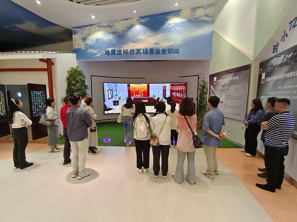 在科普講解員的帶領下,大家依次參觀了地震模擬體驗區、地震災害區、地震知識區、防震減災區、避震訓練體驗區等。通過現場聽講解、看視頻、觀模型,全面地學習了解了地震的成因、地震帶的分布、地震波的類別、地震破壞形式等相關知識。觀看4D微電影《災難啟示錄》,直觀體驗了地震帶來的巨大危害。在“避震訓練體驗區”,仿真體驗學習科學避險和自救互救。通過系統研學,黨員師生進一步樹牢了風險防范意識和底線思維。